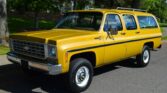 UNRESTORED ORIGINAL PAINT SURVIVOR; 90,900 ORIGINAL AUTHENTIC MILES; BEAUTIFUL & STRIKING ORIGINAL YUBA GOLD PAINT WITH SPOT WORK; GARAGED KEPT MOST OF IT'S LIFE AND IT SHOWS; VERY LOW PRODUCTION NUMBERS OF THE SUBURBAN K-20 4X4 IN THE 1970'S ( PROBABLY THE RAREST MODEL ); INCREDIBLE ORIGINAL INTERIOR AND STILL SMELLS LIKE NEW; STUNNING ORIGINAL SADDLE PLAID PATTERN SEATS IN BEAUTIFUL CONDITION; BEAUTIFUL ORIGINAL DASH WITH NO CRACKS; THE UNDERCARRIAGE IS ORIGINAL AND UNRESTORED AND IN AMAZING CONDITION;…