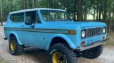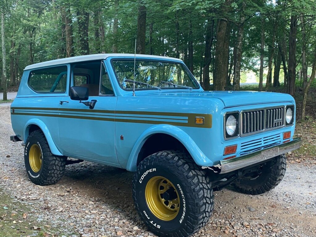 Available is this 1975 International Harvester Scout II. This low-mileage 4X4 is straight, solid, and rust-free. Very clean inside and out! Finished in baby blue with gold custom striping & wheels, chrome grill and bumpers, newly upholstered seats, matching rear bench, and removable hard top.