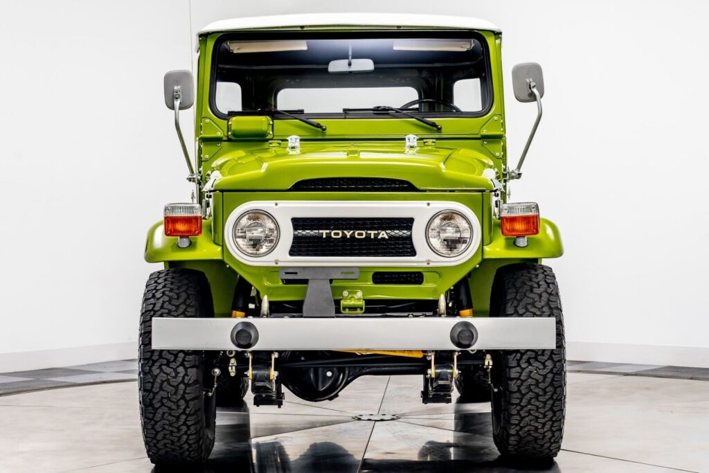 We have just added to our extensive exotic car inventory a beautiful 1976 Toyota FJ Cruiser in Olive Green over Black interior with just 70 miles since its full rotisserie restoration. This FJ is loaded with: 4.2 Liter inline 6 cylinder, 4 speed manual transmission, four wheel drive with manual locking hubs, full frame off rotisserie restoration to a MUCH better than new condition, Old Man Emu 2.5 inch lift kit, new mechanical parts from nose to tail…