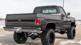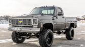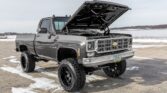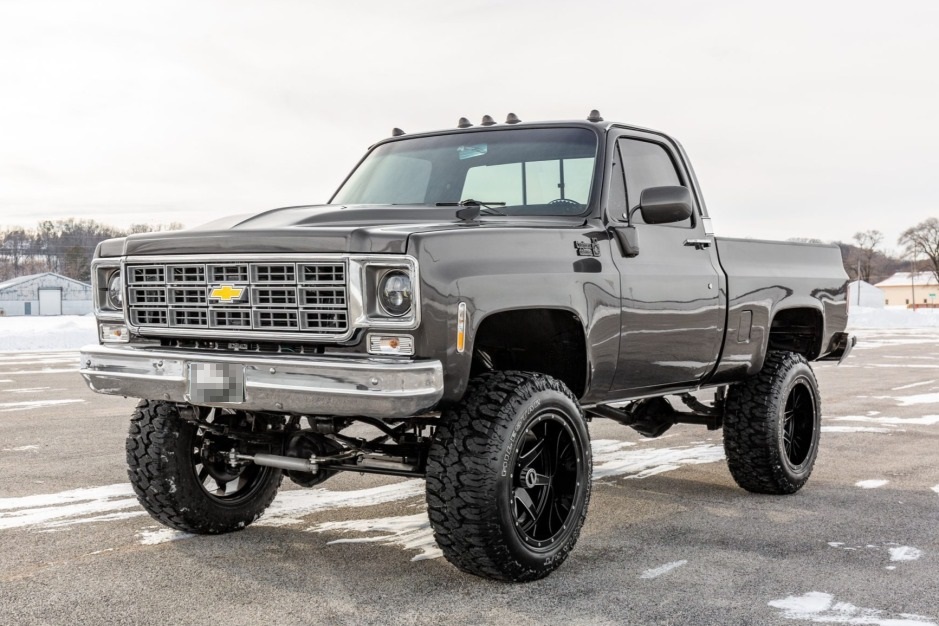 This 1978 Chevrolet K10 Silverado is a 1/2-ton 4×4 short-bed pickup finished in gray over a black interior and powered by a turbocharged Vortec 5.3-liter V8 paired with a TH350 three-speed automatic transmission and a dual-range transfer case. Features include a locking rear differential, retro-style Bluetooth stereo, Painless wiring system, Brian Tooley Racing camshaft, an On3Performance turbocharger, and a Tial wastegate and blow-off valve as well as a Holley Terminator X engine control system, Magnafuel 750 fuel pump, and a 6? suspension lift. The truck was acquired by the seller as a rolling chassis and was subsequently refurbished with work consisting of stripping and refinishing the body and frame, installing the modified engine and transmission, and replacing the suspension, brakes, and interior.