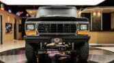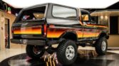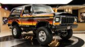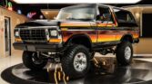 It is in pristine condition and it’s sporting a glossy Black PPG base/clear finish with Freewheeling reflective sunset graphics added on top of the clear coat and the removable hardtop has been restored, retextured and finished in matte black. This Bronco has been very well kept over the years and it shows throughout. The interior of this ’79 Bronco is absolutely beautiful and it’s in great condition! Take a look inside to see this Ford sporting New Carpet, Sound – Deadener, Custom Finished Center Console, TMI Bomber Brown front Bucket Seats and A Rear Split Bench Mounted on Sliders (Both Sides Recline, RestoMod Brand Heat and Air Conditioning, Dakota Digital VHX Silver – Faced Gauges, New Tilt Steering Column from Ididit with Billet Controls and AMP Research Power Side Steps!