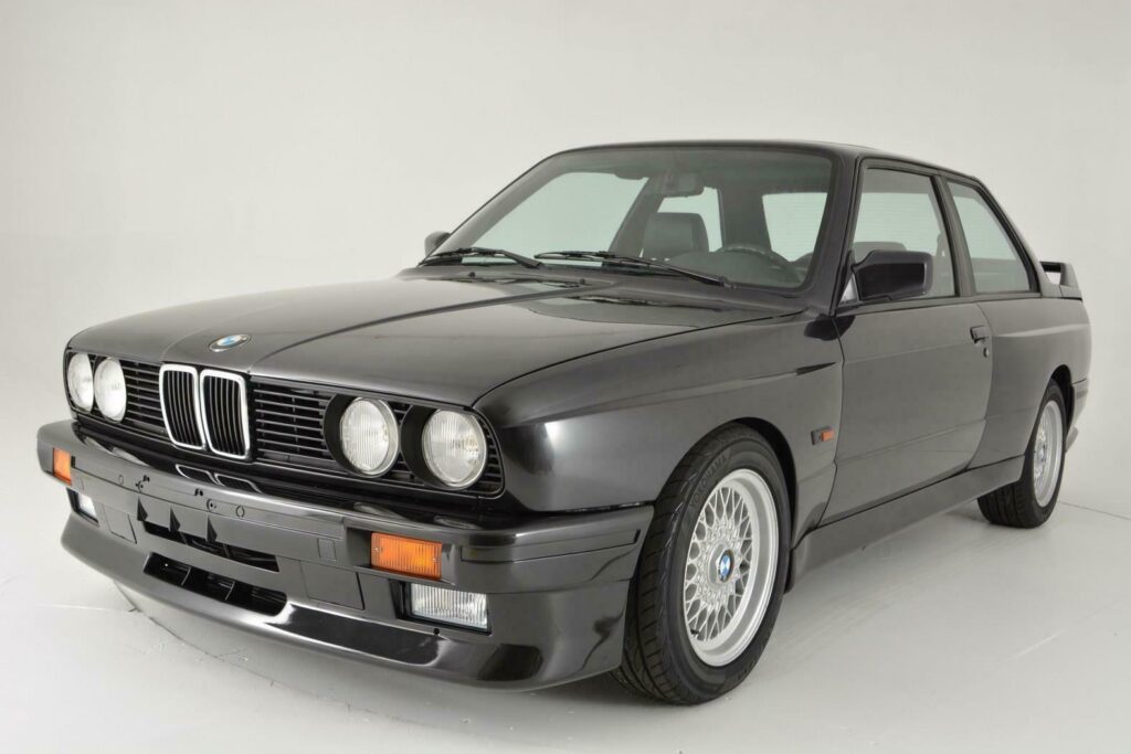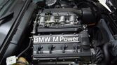 It is finished in Diamond Black Metallic over black leather and powered by a 2.3-liter S14 inline-four paired with a five-speed manual transmission and a limited-slip differential. Equipment includes M3-specific widened bodywork, fog lights, a sunroof, a factory cassette stereo, air conditioning, and 15″ basketweave wheels.